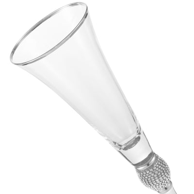 Berkware Set of 6 Champagne Glasses - Luxurious Champagne Trumpet Flutes with Silver tone Dazzling Rhinestone Design and Silver tone Rim